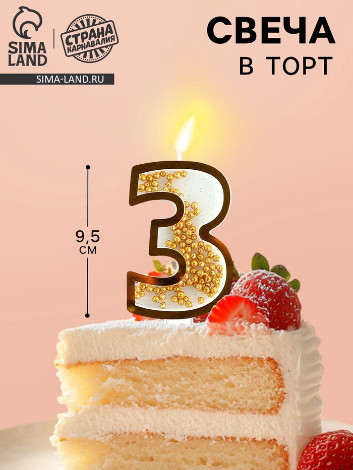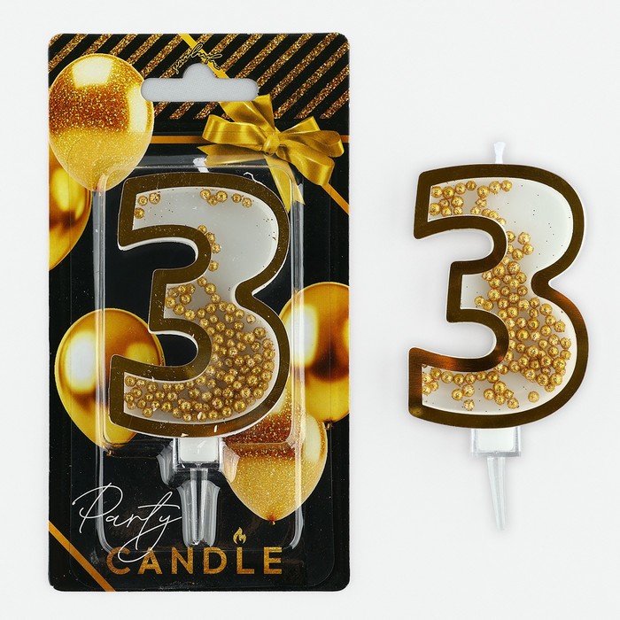 Свеча для торта, цифра с шейкером «3», 9.5×4 см