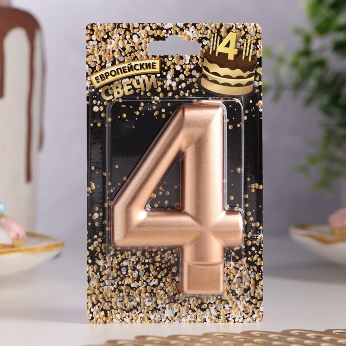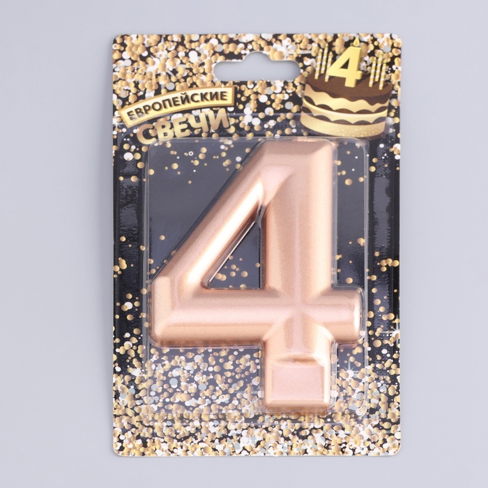 Свеча для торта «Европейская ГИГАНТ», цифра 4, 7 см, розовое золото
