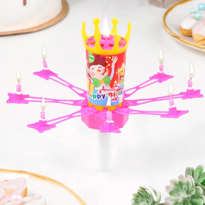 Свеча для торта музыкальная «Цветок», розовая, 15×5 см