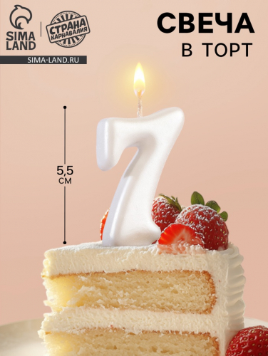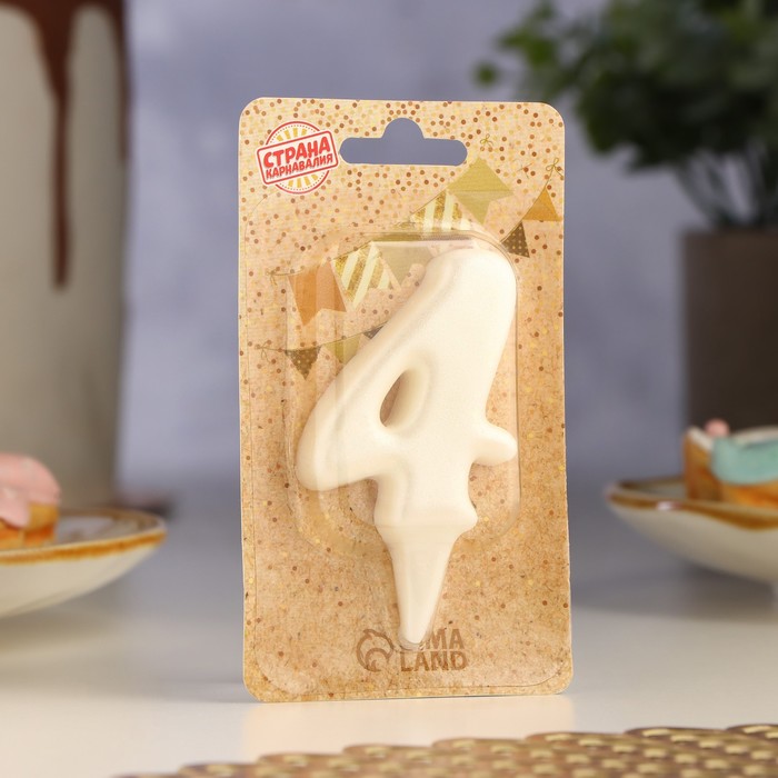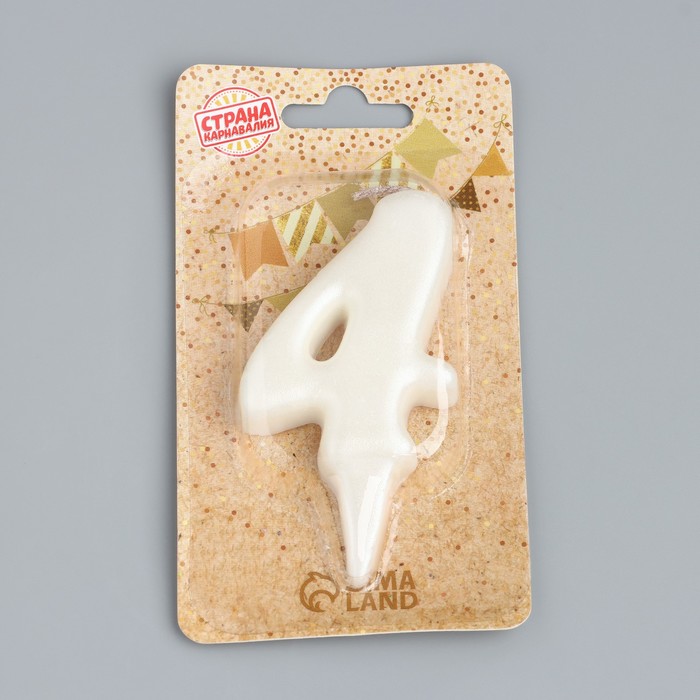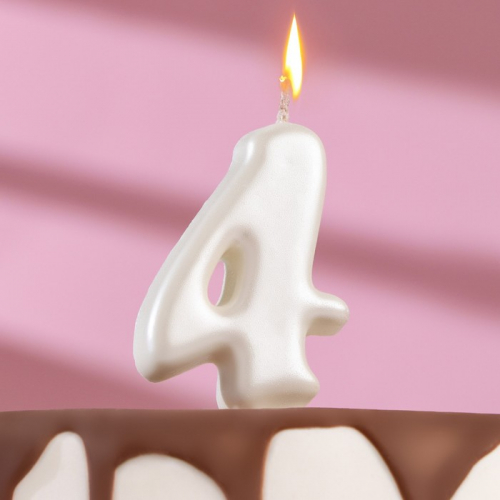 Свеча для торта «Овал» цифра 4, большая, жемчужный, 5.5 см