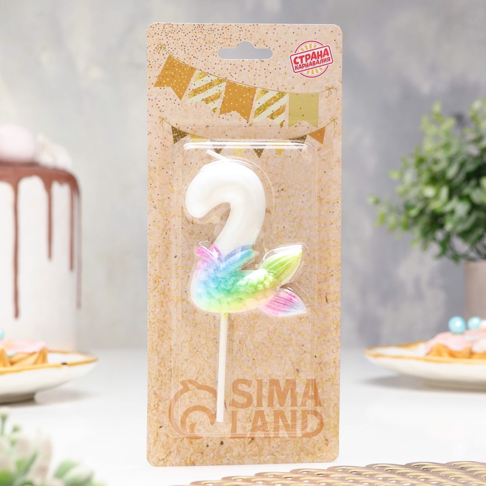Свеча для торта «Рыбка исполнения желаний», цифра 2, белая