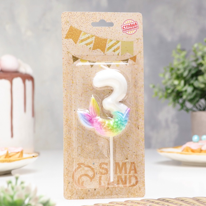 Свеча для торта «Рыбка исполнения желаний», цифра 3, белая