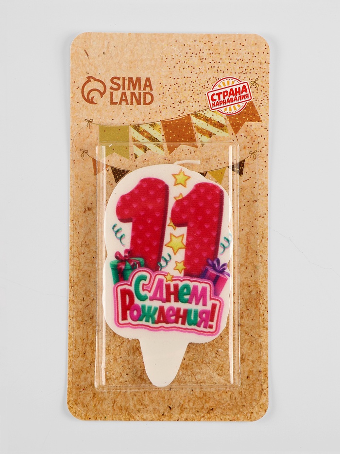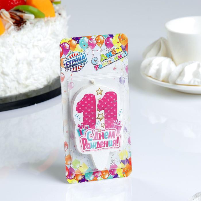 Свеча для торта «С Днём Рождения, цифра 11», розовая, 6.5 см
