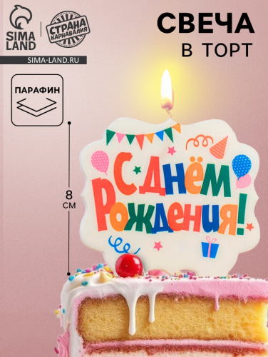 Свеча для торта «С Днём Рождения. Праздничная», разноцветная, 8 см
