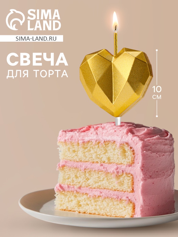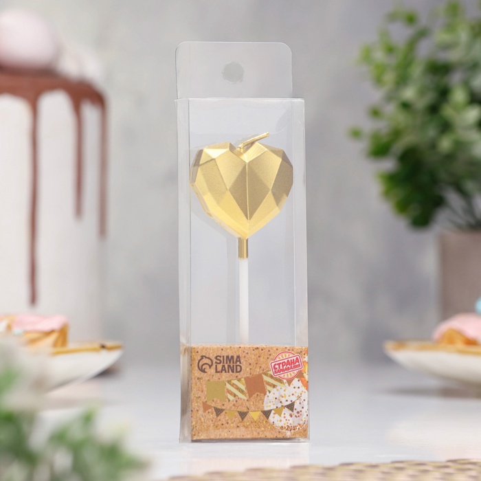 Свеча для торта «Сердце», золотая