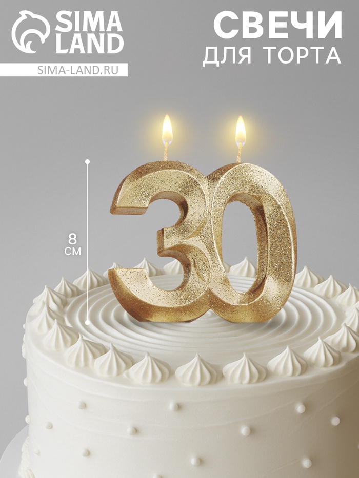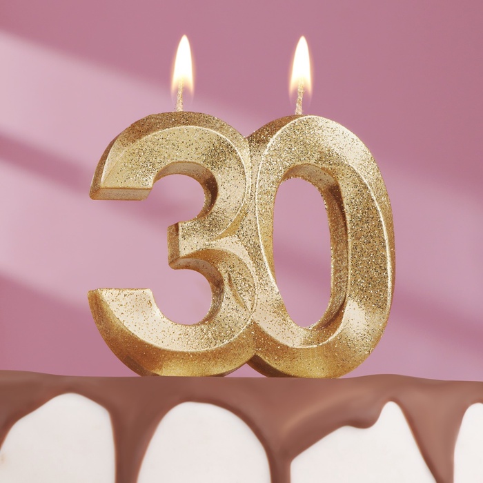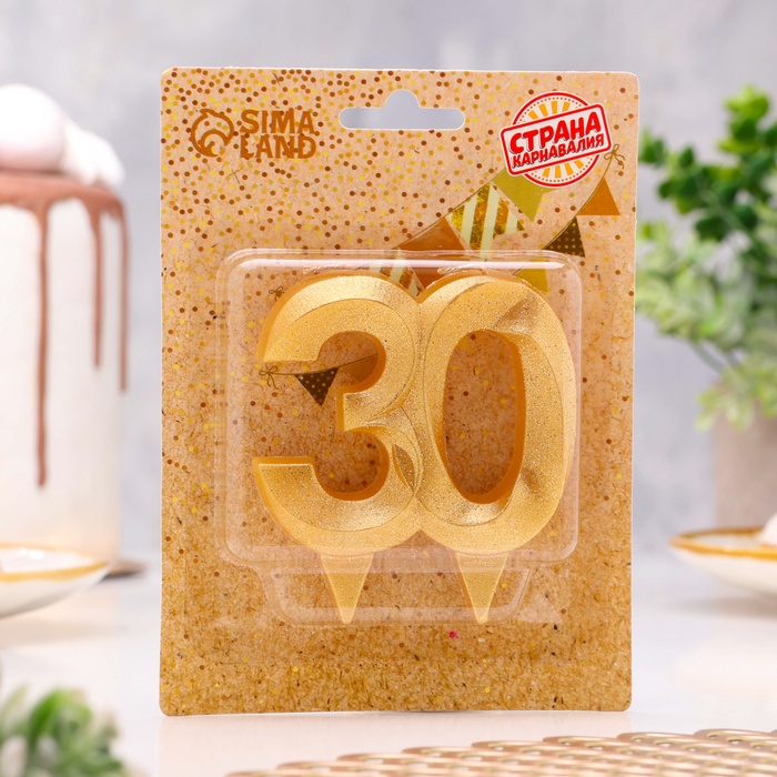 Свеча для торта юбилейная «Грань», цифра 30, золотой блеск, 8 см