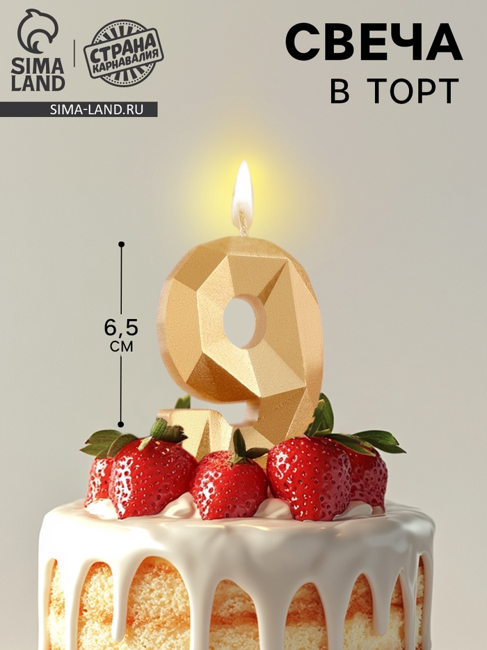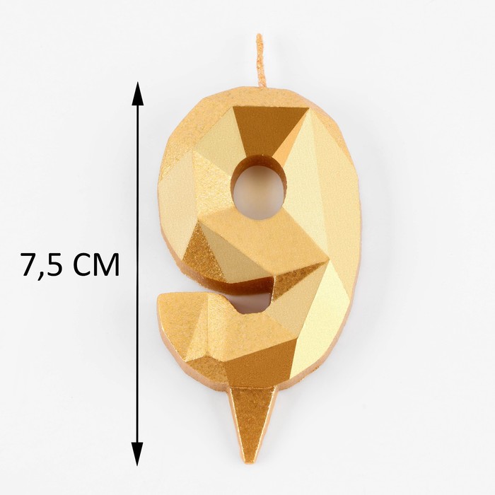 Свеча в торт «Алмаз» цифра 9 золотая, 6.5 см