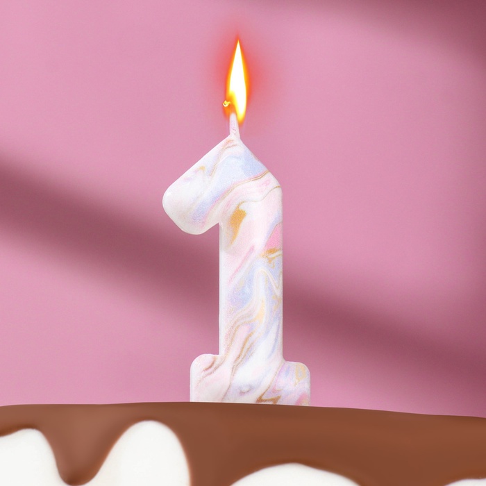 Свеча в торт «Белый мрамор», цифра 1, 5.5 см