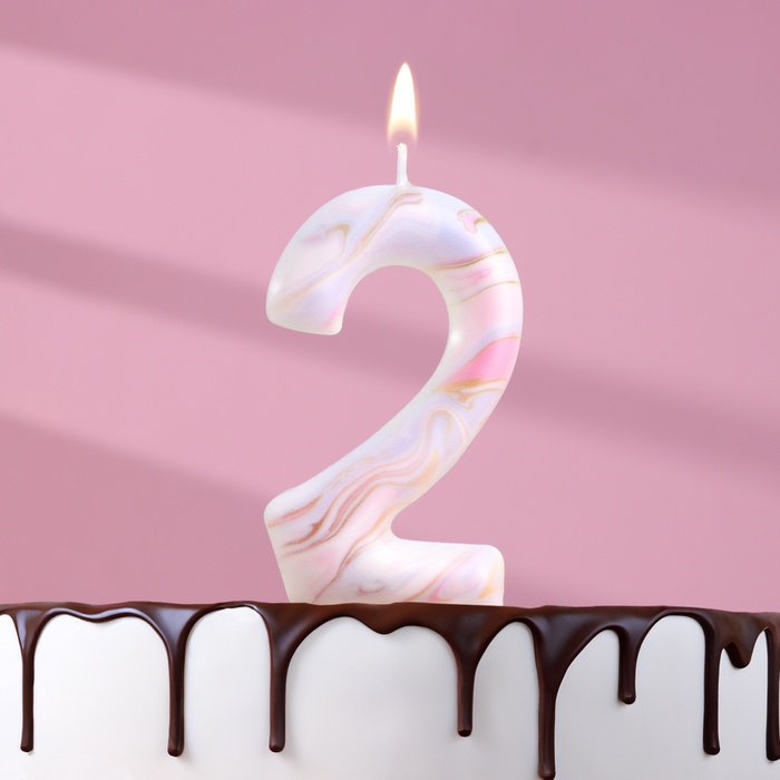 Свеча в торт «Белый мрамор», цифра 2, ГИГАНТ, 12.5 см