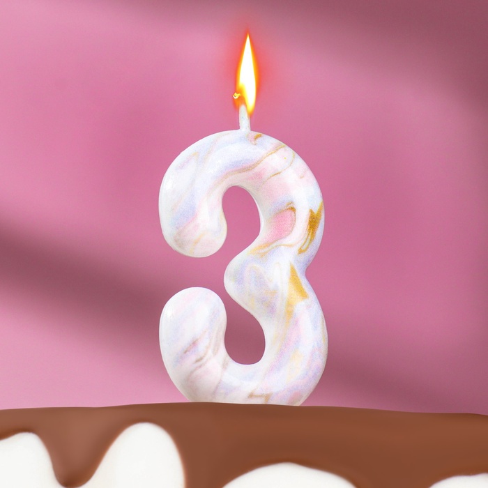 Свеча в торт «Белый мрамор», цифра 3, 5.5 см