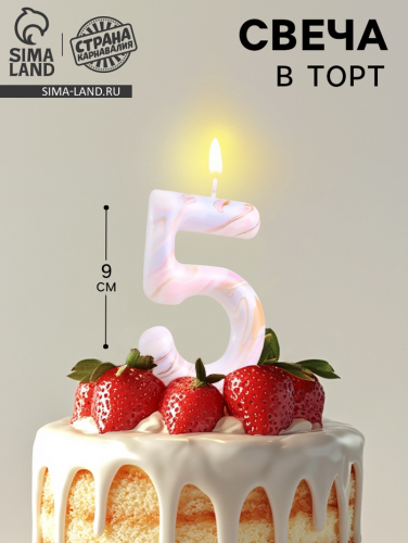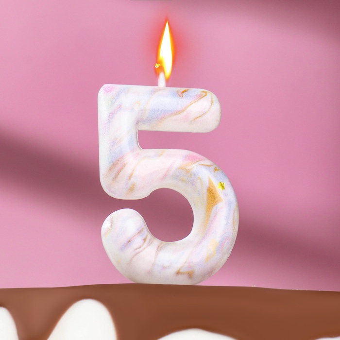 Свеча в торт «Белый мрамор», цифра 5, 5.5 см