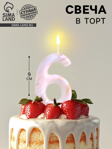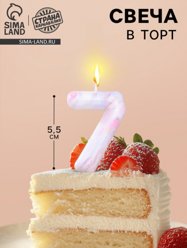 Свеча в торт «Белый мрамор», цифра 7, 5.5 см