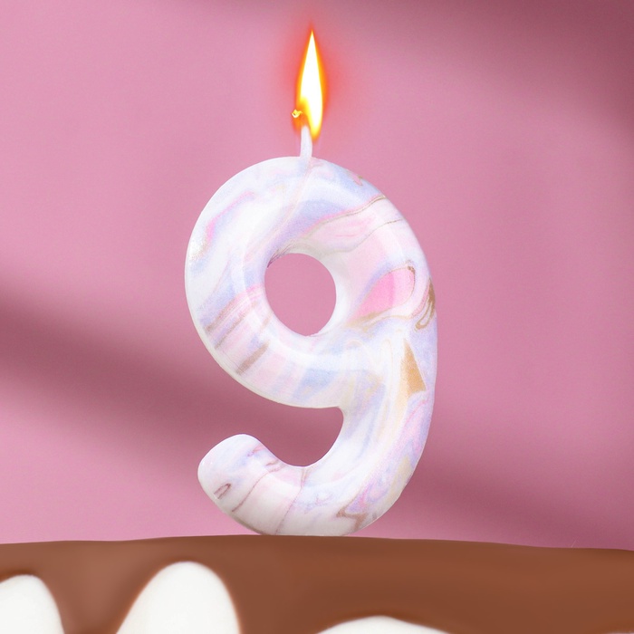 Свеча в торт «Белый мрамор», цифра 9, 5.5 см