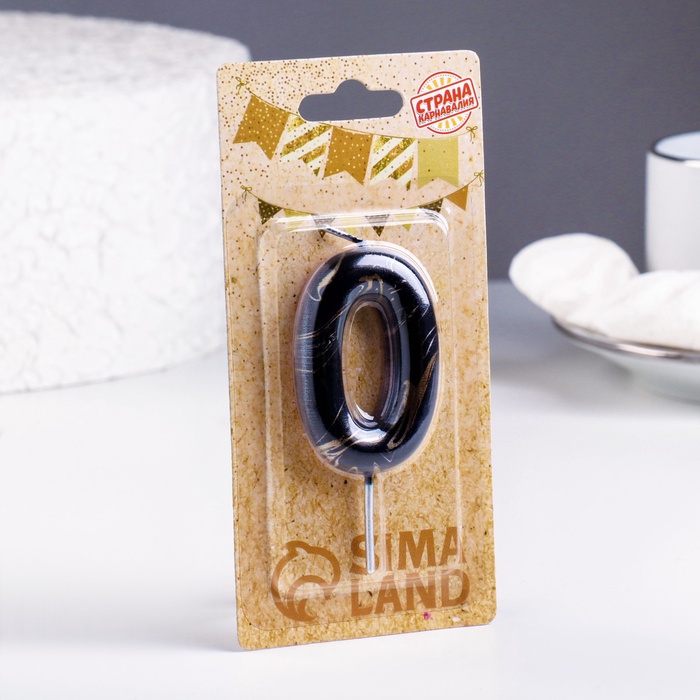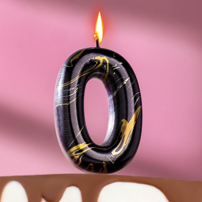 Свеча в торт «Черный мрамор», цифра 0, 5.5 см