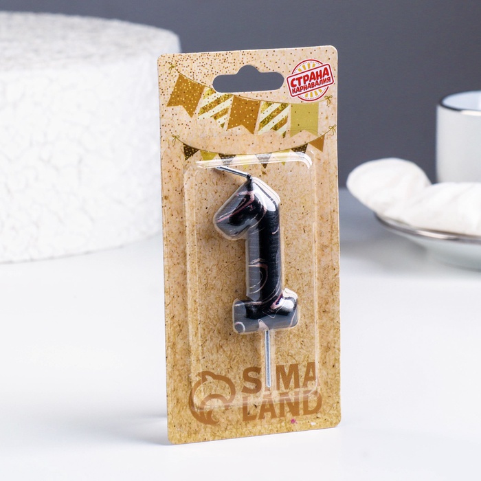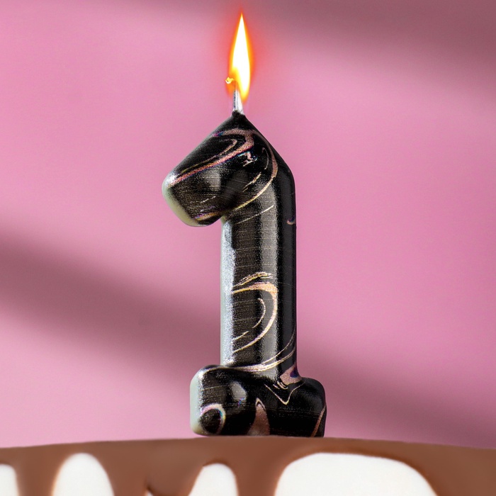 Свеча в торт «Черный мрамор», цифра 1, 5.5 см