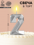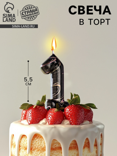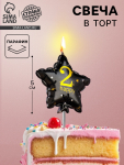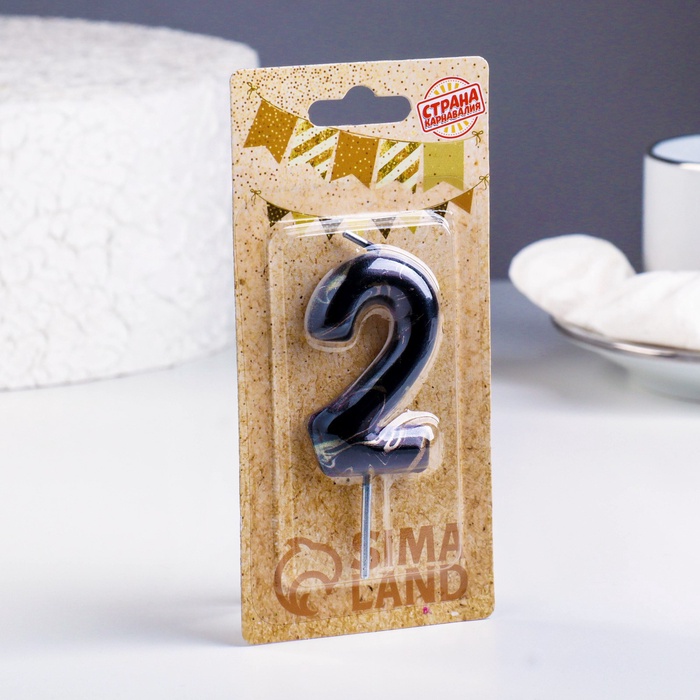 Свеча в торт «Черный мрамор», цифра 2, 5.5 см