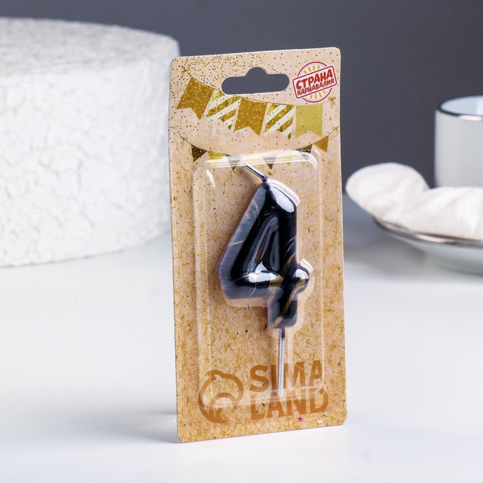 Свеча в торт «Черный мрамор», цифра 4, 5.5 см