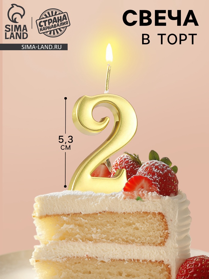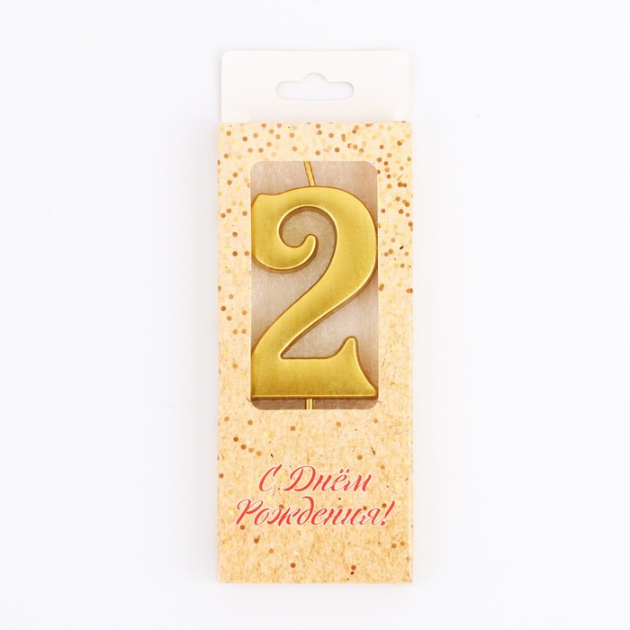Свеча в торт «Цифра 2», 5.3 см, золотая