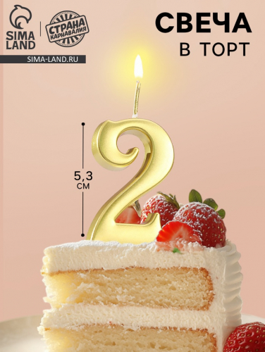 Свеча в торт «Цифра 2», 5.5 см