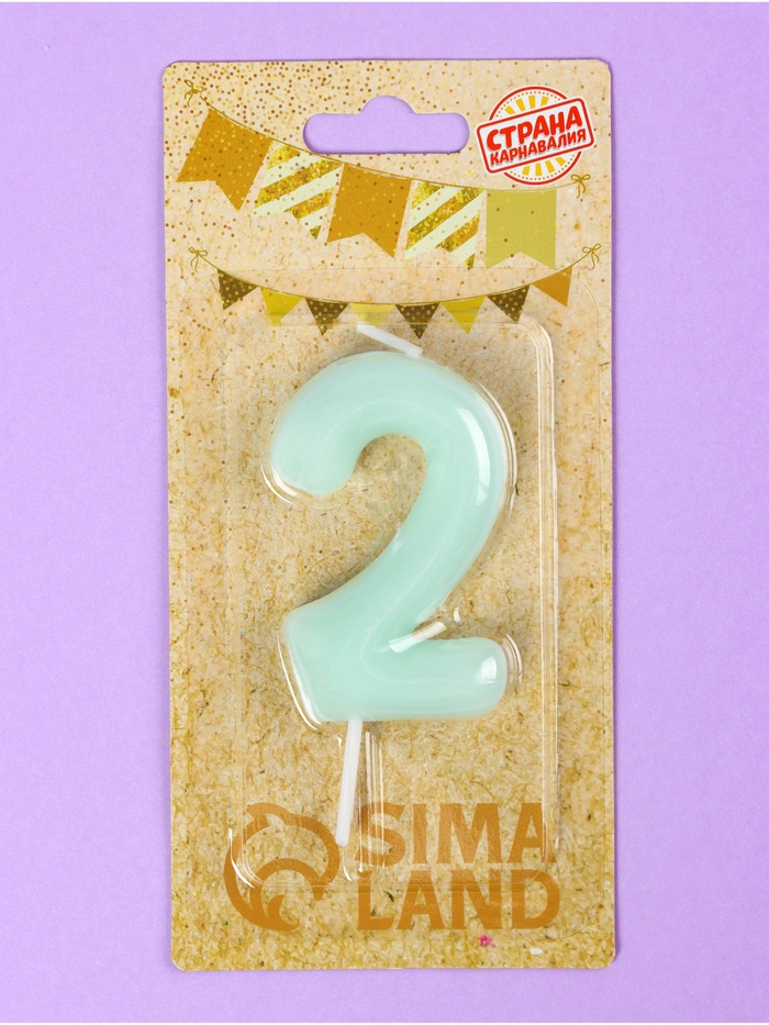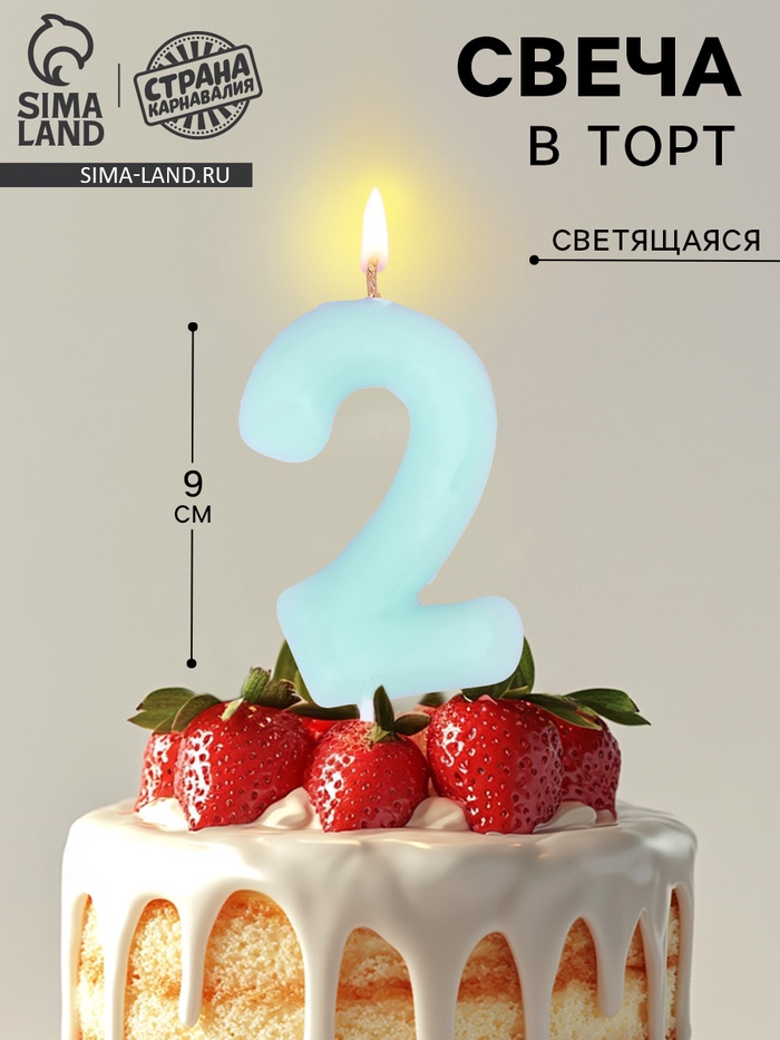Свеча в торт «Цифра 2», светящаяся голубая, 9 см