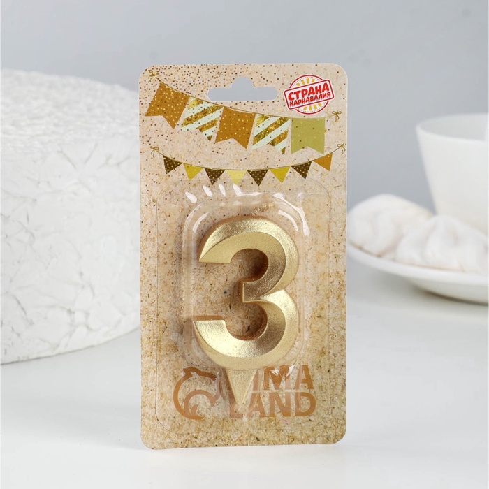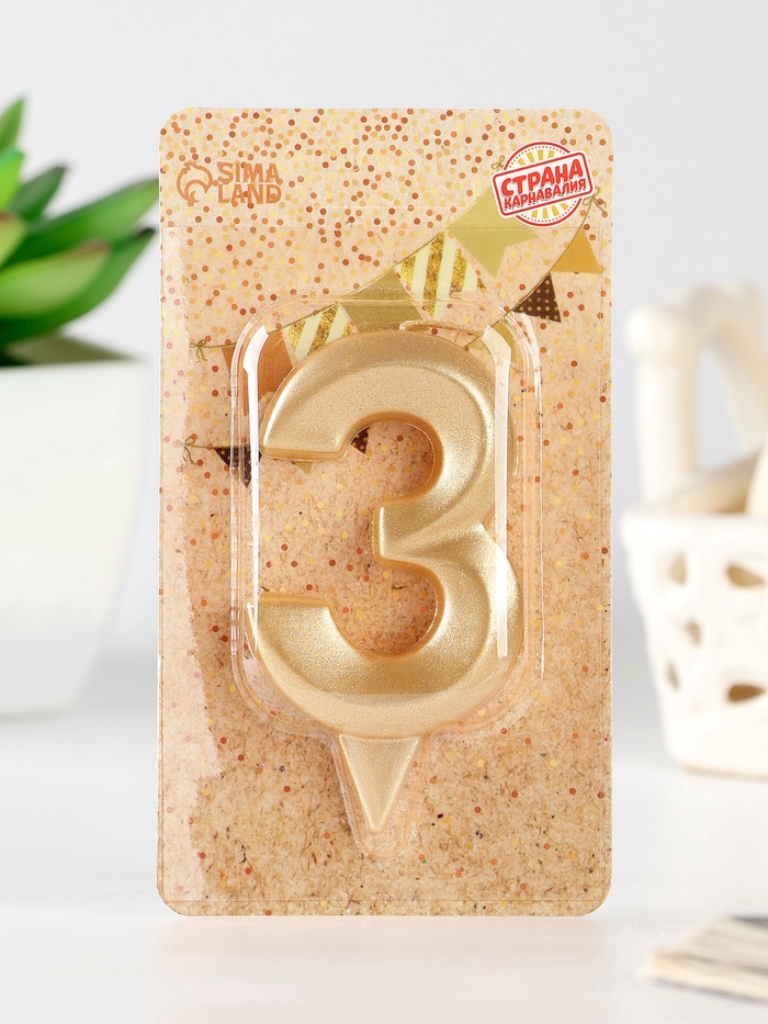 Свеча в торт «Цифра 3», золотая, 6.5 см