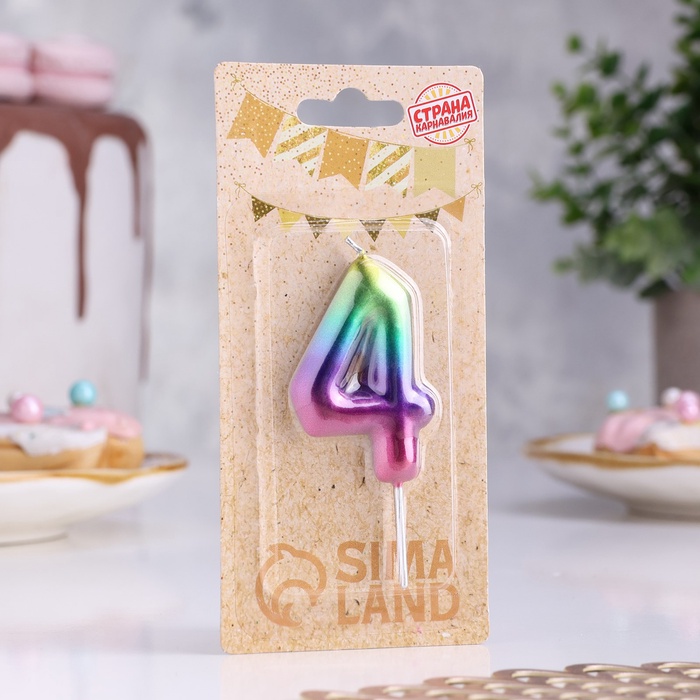 Свеча в торт «Цифра 4», 5.5 см