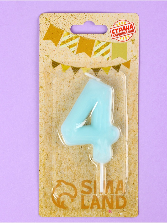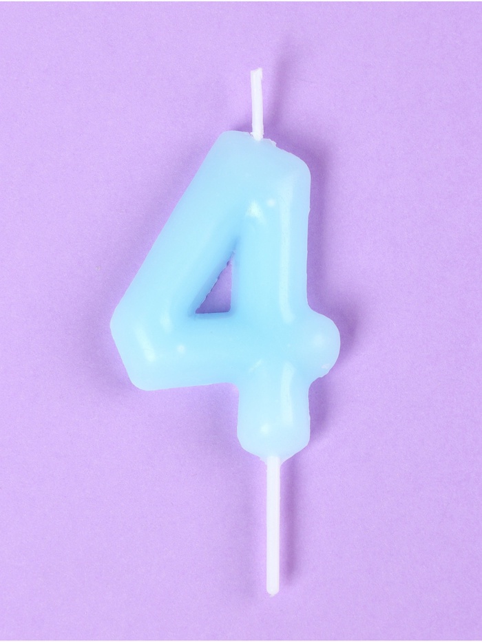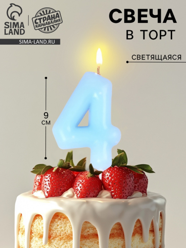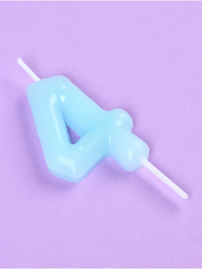 Свеча в торт «Цифра 4», светящаяся голубая, 9 см