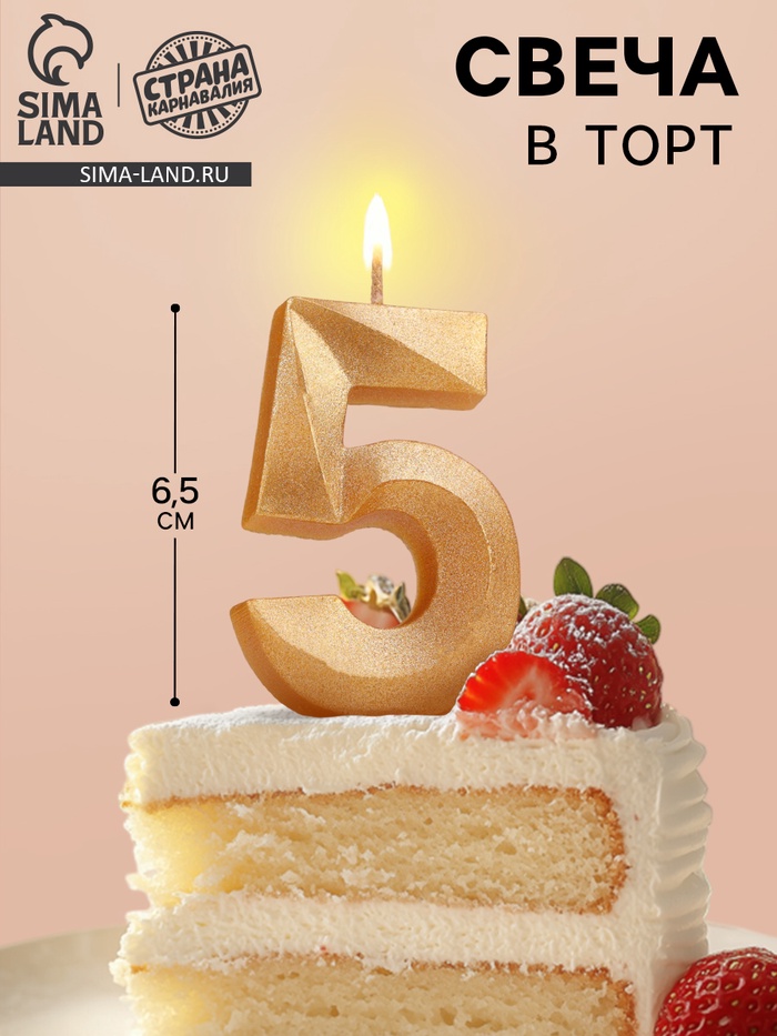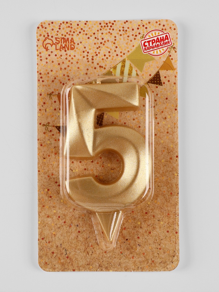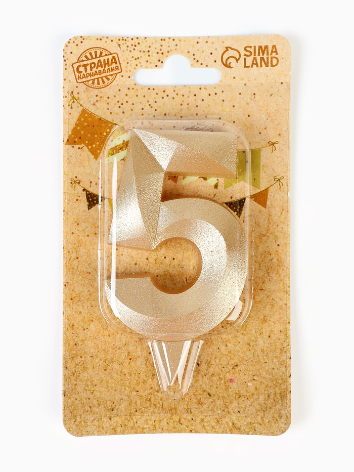 Свеча в торт «Цифра 5», золотая, 6.5 см