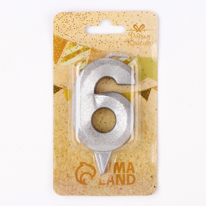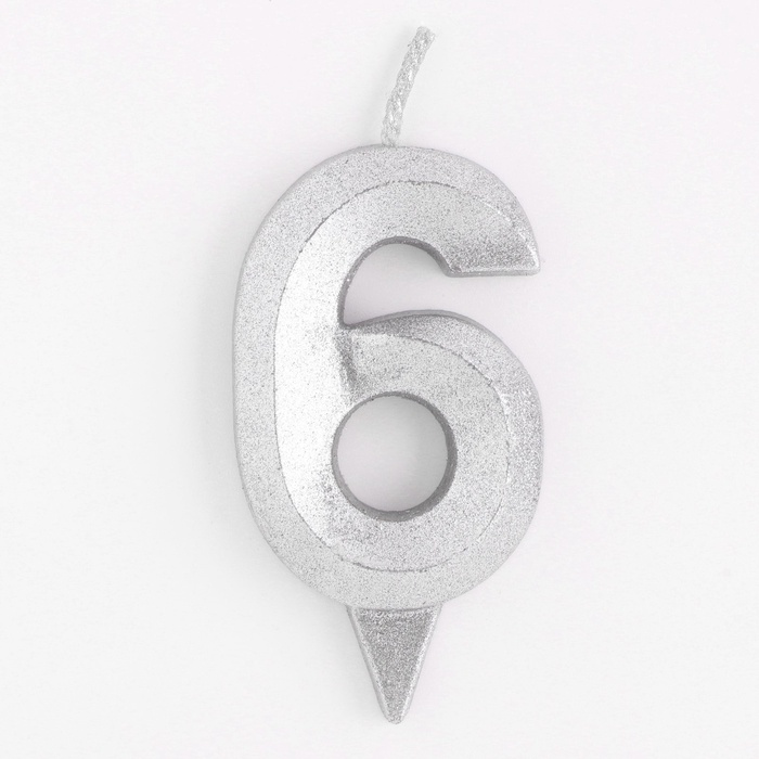 Свеча в торт «Цифра 6», серебряная, 6.5 см