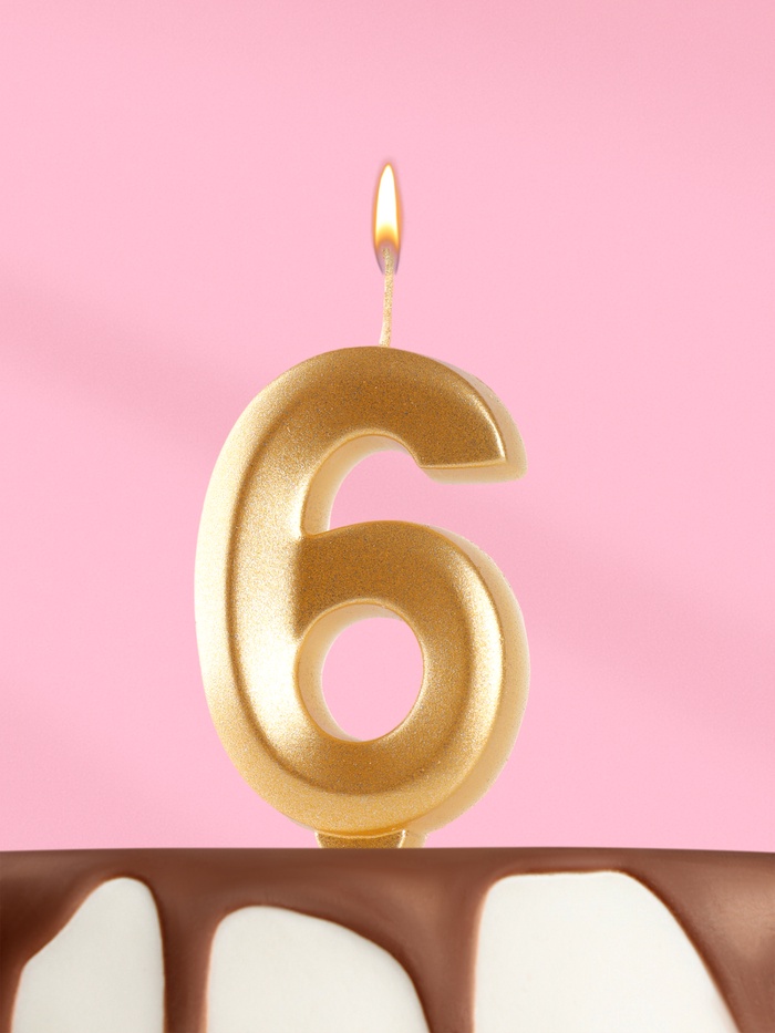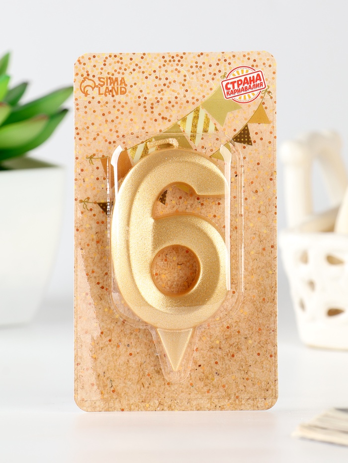 Свеча в торт «Цифра 6», золотая, 6.5 см