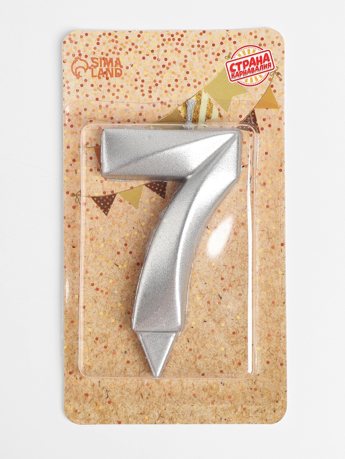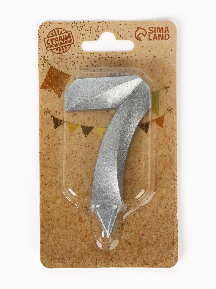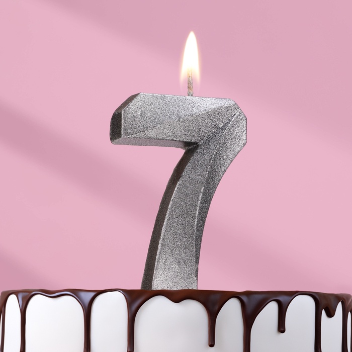 Свеча в торт «Цифра 7», серебряная, 6.5 см