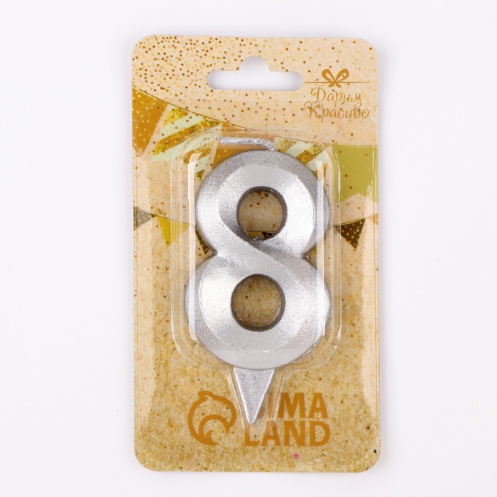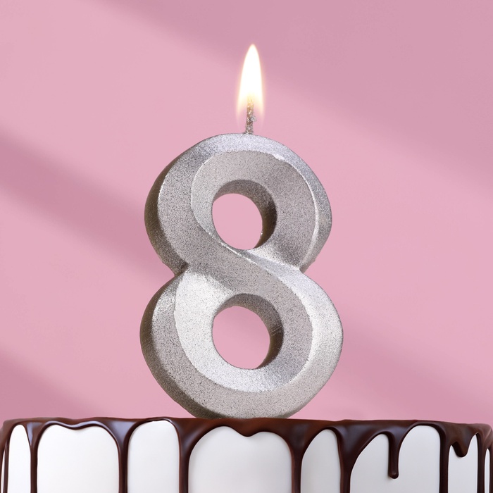 Свеча в торт «Цифра 8», серебряная, 6.5 см