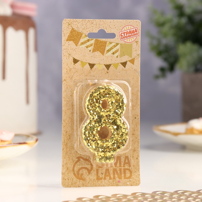 Свеча в торт «Цифра 8», золотая, 5.5 см