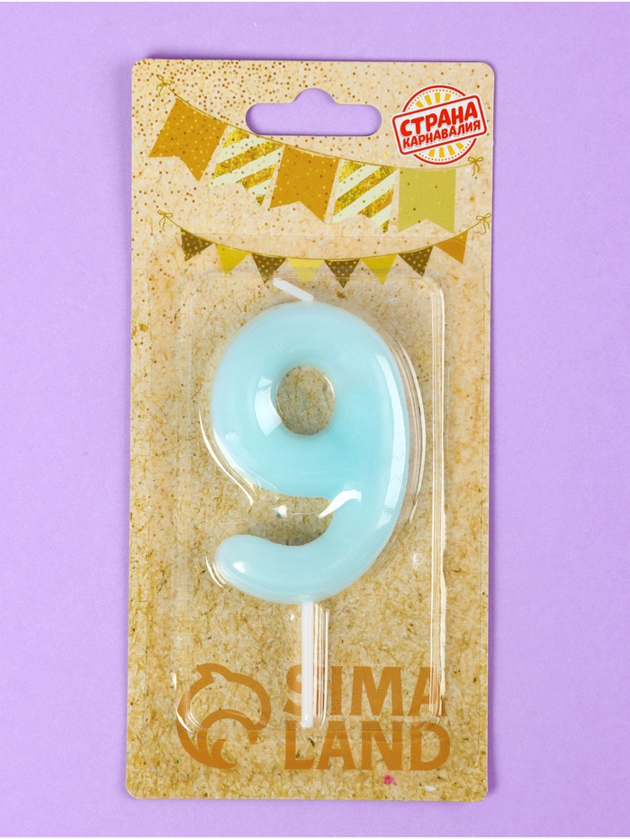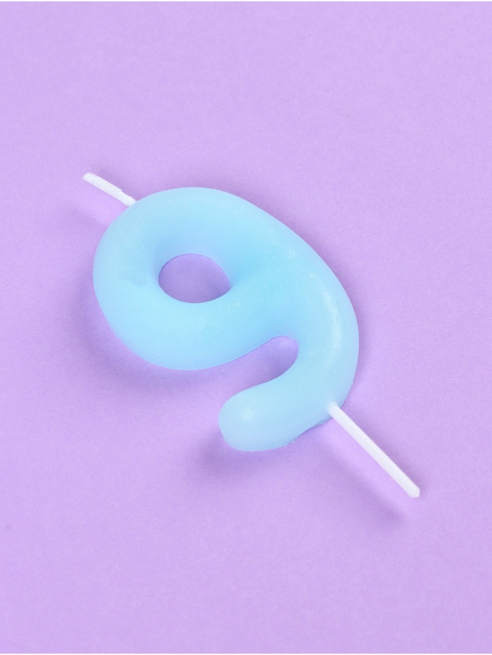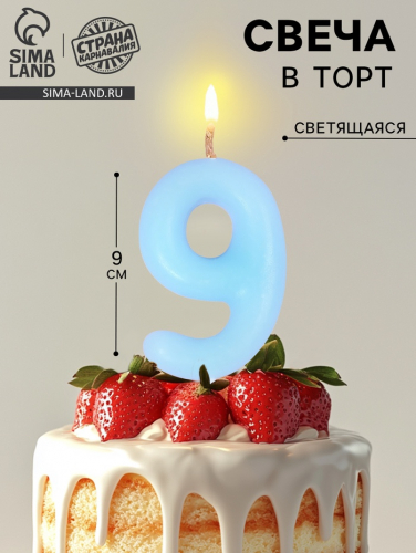 Свеча в торт «Цифра 9», светящаяся голубая, 9 см