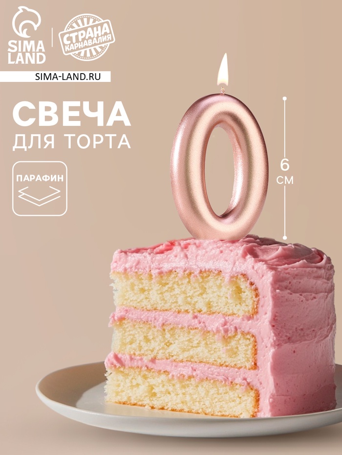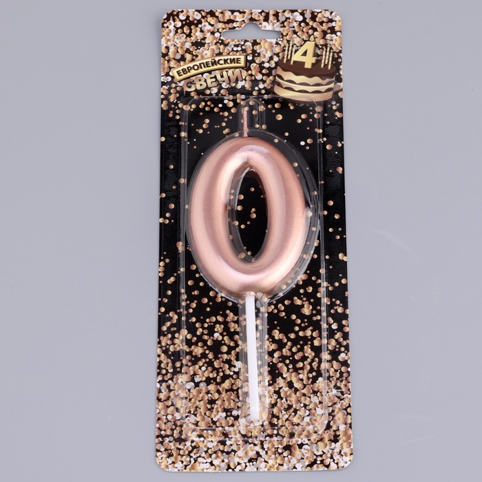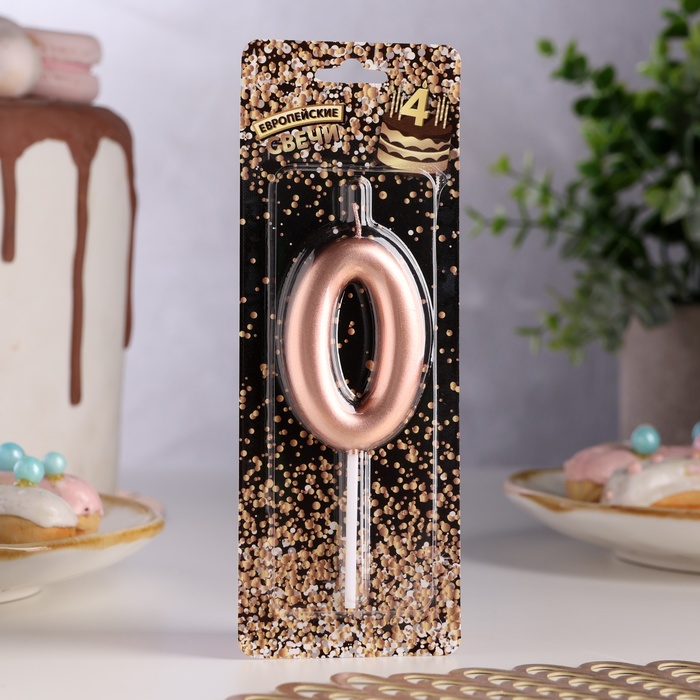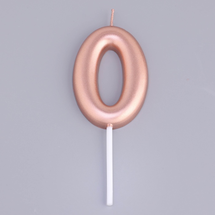 Свеча в торт «Европейская», цифра 0, 6 см, розовое золото