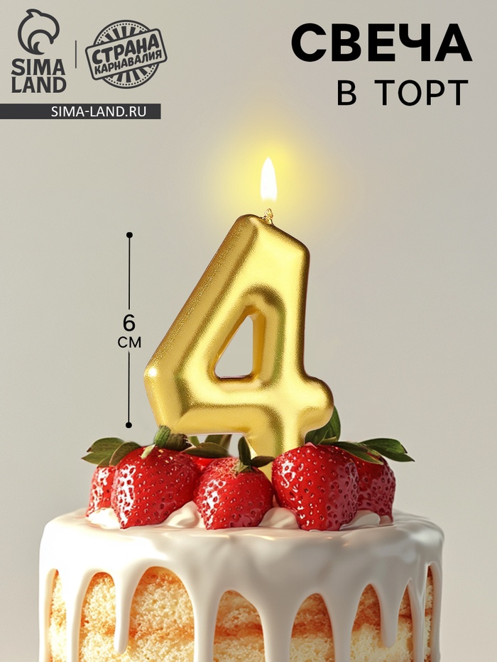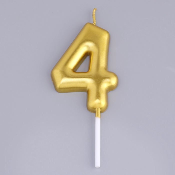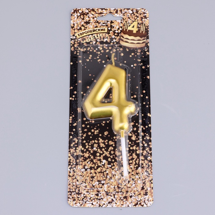 Свеча в торт «Европейская», цифра 4, 6 см, золото