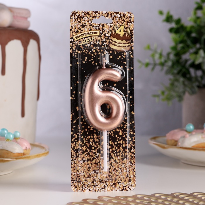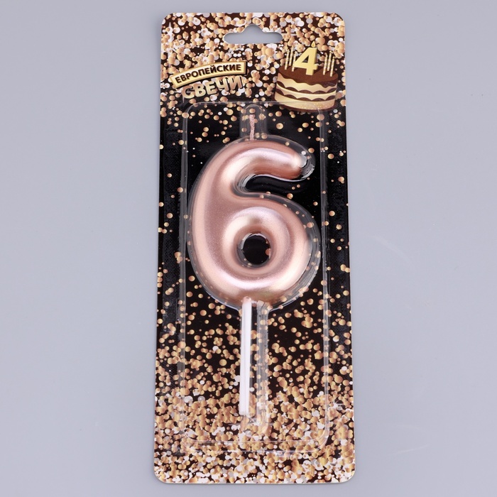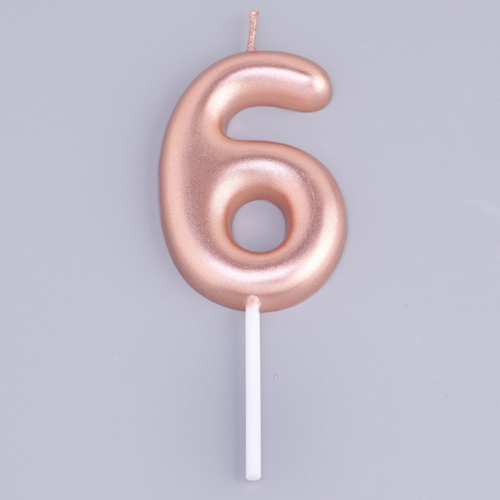 Свеча в торт «Европейская», цифра 6, 6 см, розовое золото