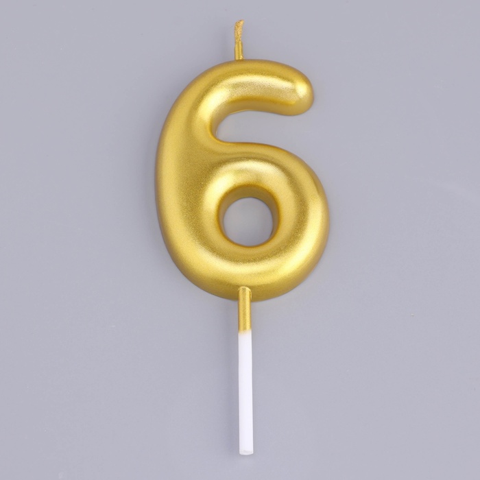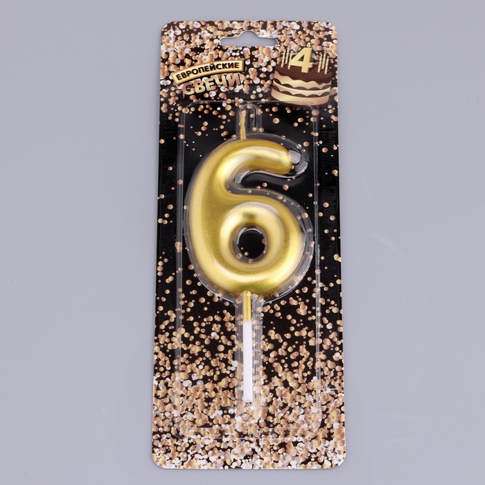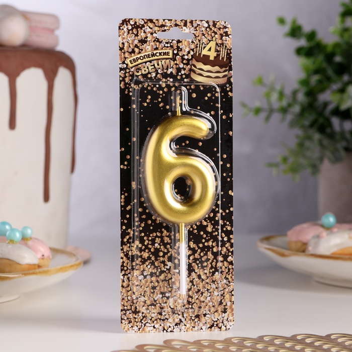 Свеча в торт «Европейская», цифра 6, 6 см, золото