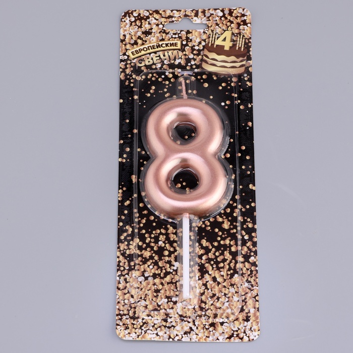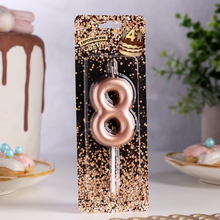 Свеча в торт «Европейская», цифра 8, 6 см, розовое золото