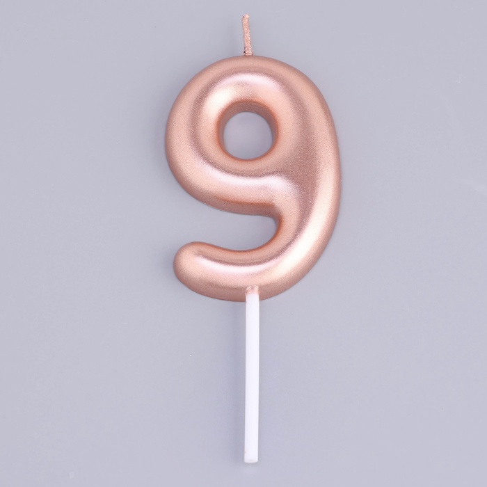 Свеча в торт «Европейская», цифра 9, 6 см, розовое золото