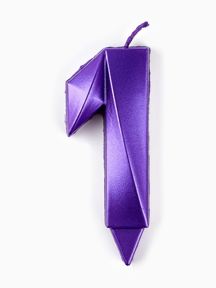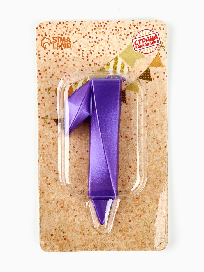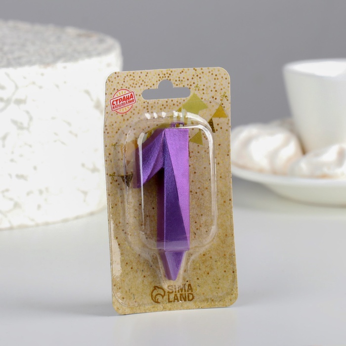Свеча в торт «Грань», цифра 1, фиолетовый металлик, 6.5 см