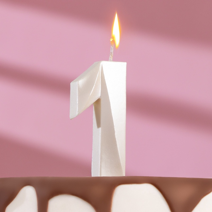 Свеча в торт «Грань», цифра 1, жемчужный, 6.5 см