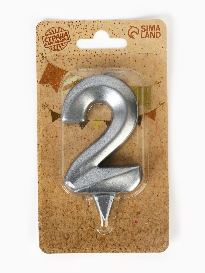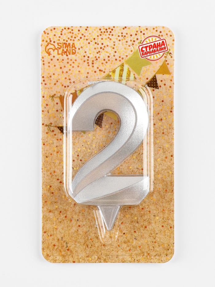 Свеча в торт «Грань», цифра 2, серебряный металлик, 6.5 см
