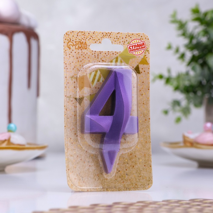 Свеча в торт «Грань», цифра 4, фиолетовый металлик, 6.5 см