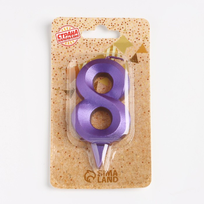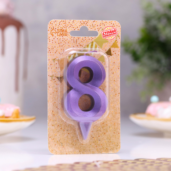 Свеча в торт «Грань», цифра 8, фиолетовый металлик, 6.5 см