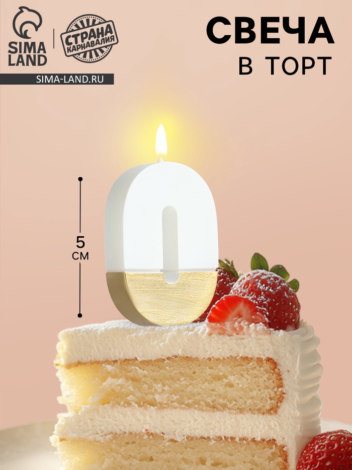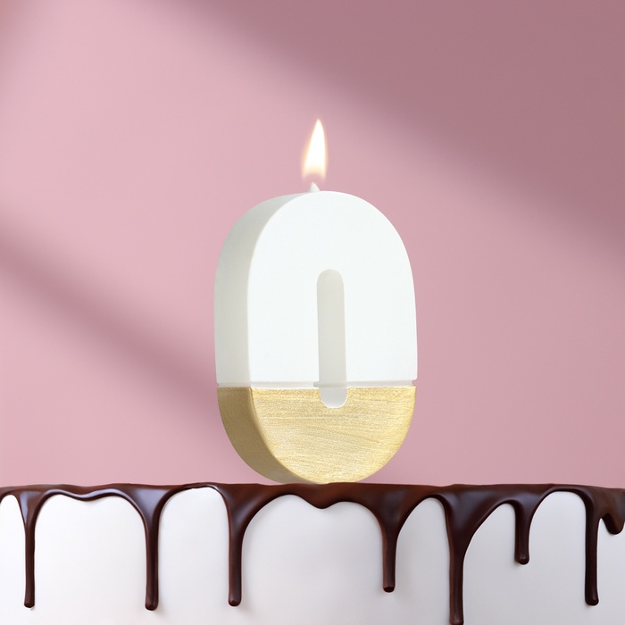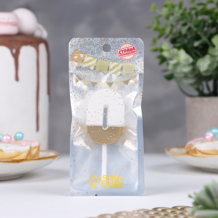Свеча в торт «Манхеттен», цифра 0, белая с золотом, 5 см