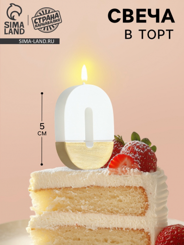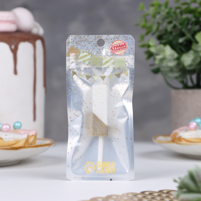 Свеча в торт «Манхеттен», цифра 1, белая с золотом, 5 см