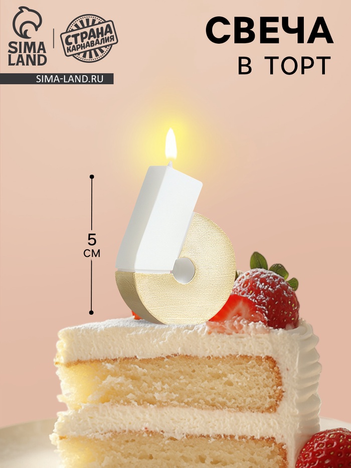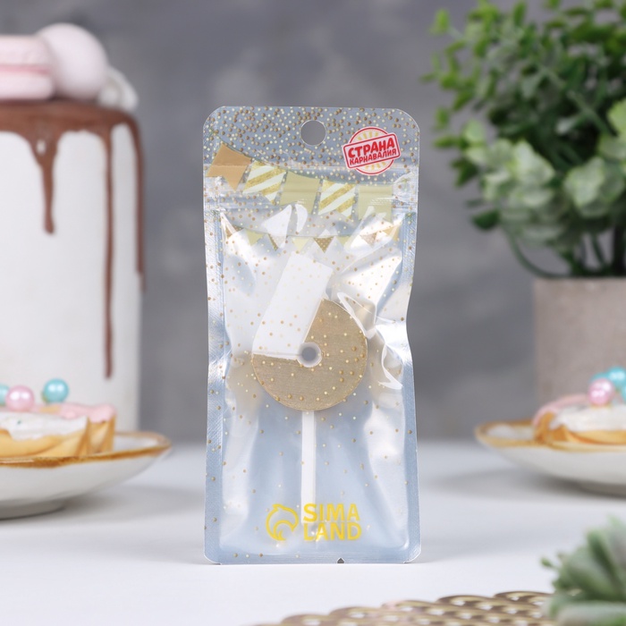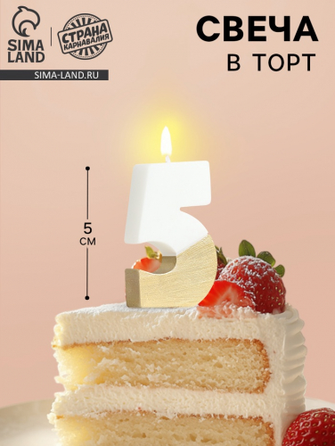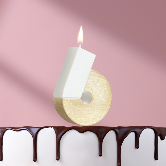 Свеча в торт «Манхеттен», цифра 6, белая с золотом, 5 см