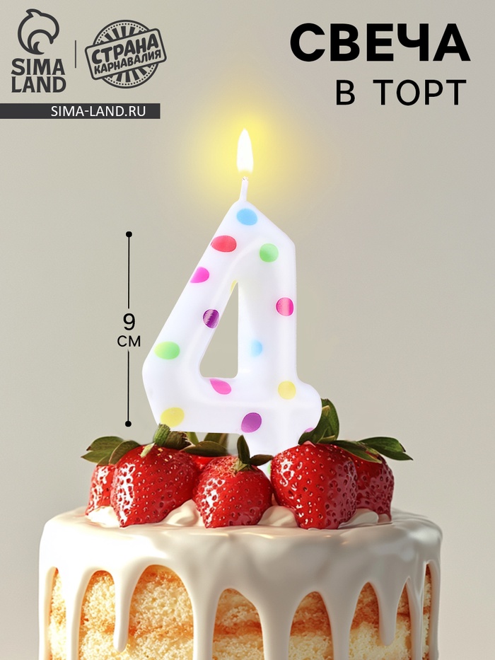 Свеча в торт на день рождения «Цифра 4 », 9 см