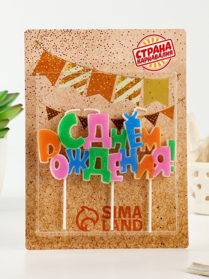 Свеча в торт на шпажках «С днем рождения», разноцветная